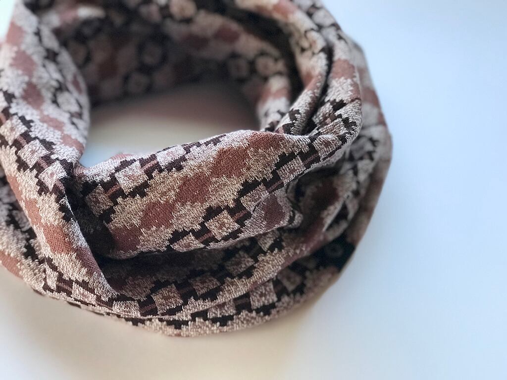 尾州産地(愛知県尾張地方)の工房で作り出された、フェアアイル模様ジャガードのスヌードです。