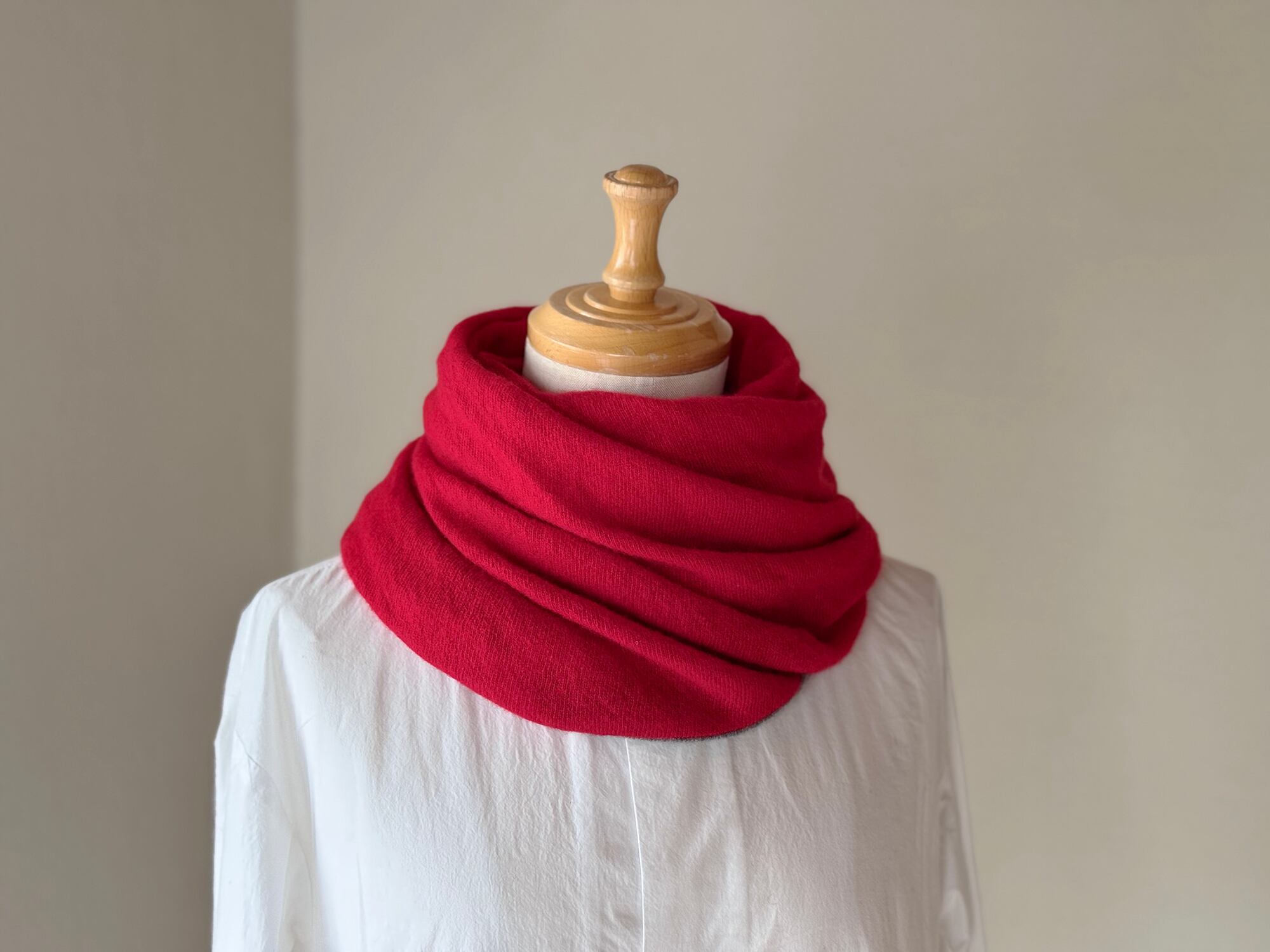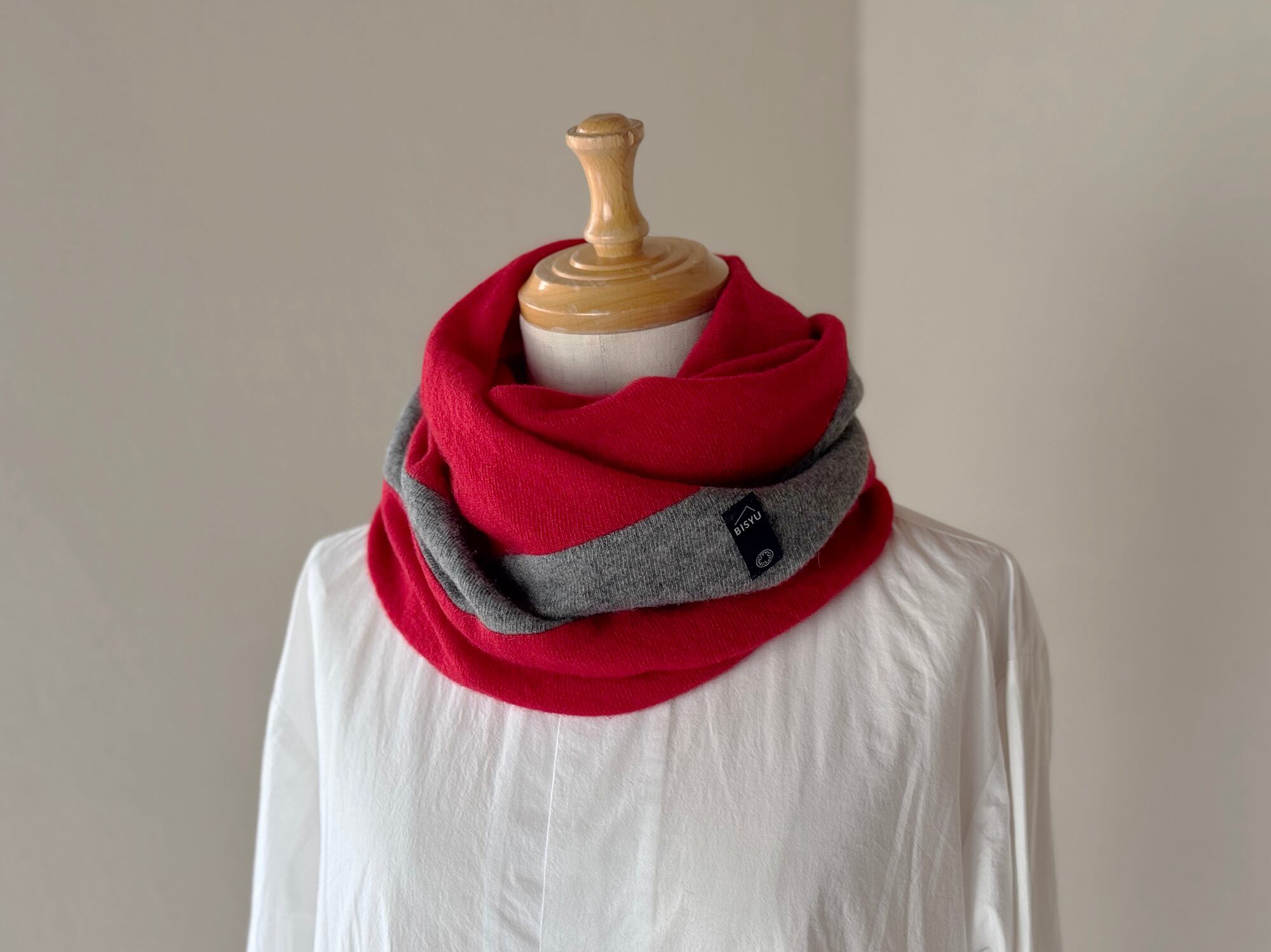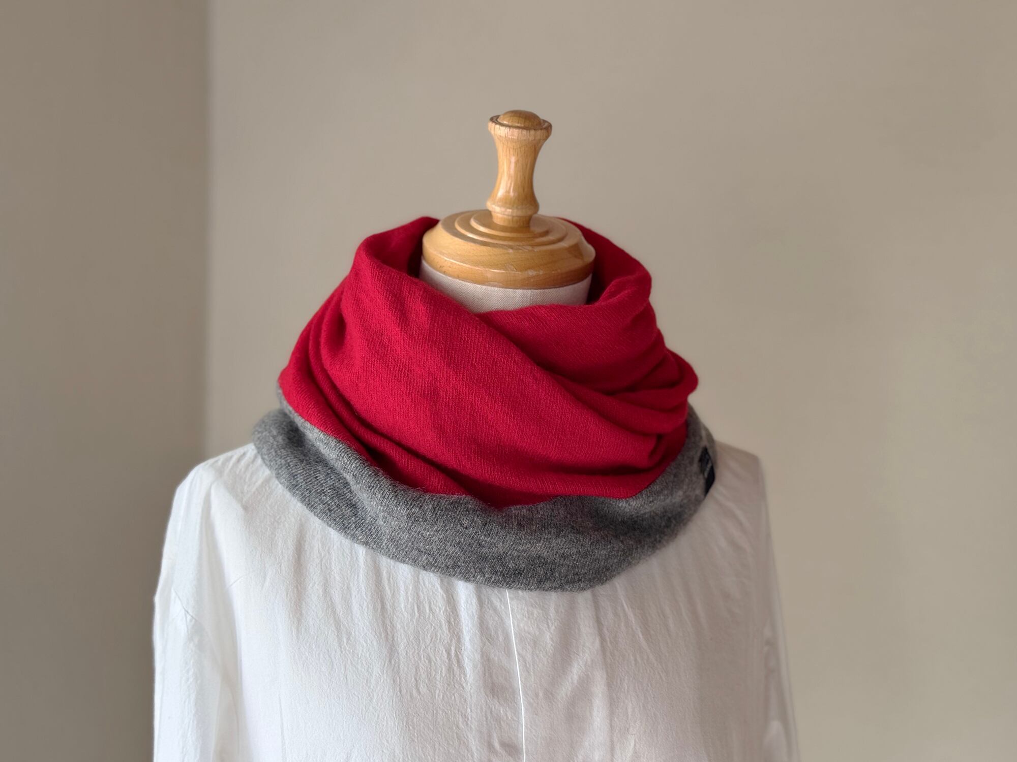 温度を纏う。純カシミヤねじりスヌード [Obi Design]レッド/杢グレー