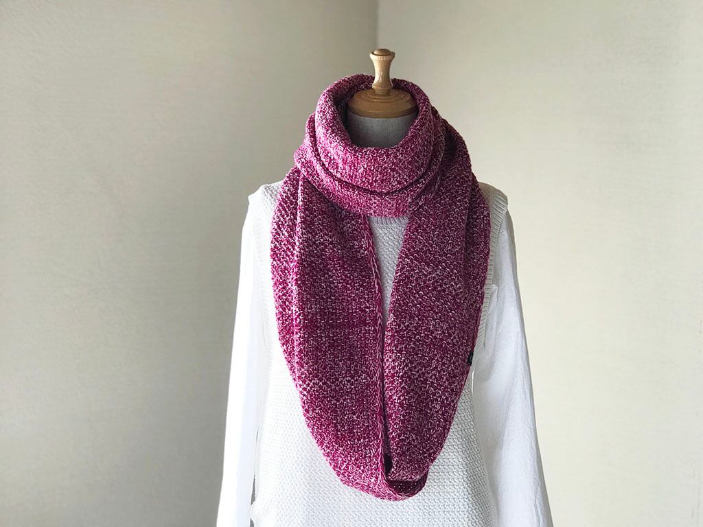 ワンループのマフラーとして。その他、ご自身で色々チャレンジして楽しんで頂けたら。