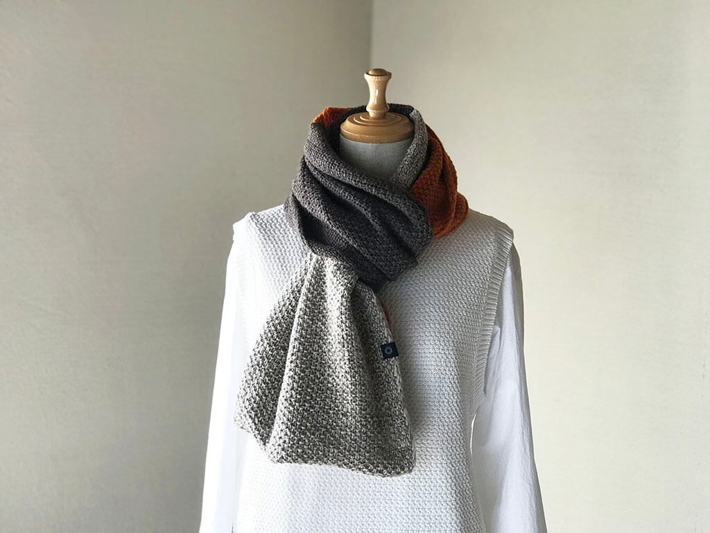 ぐるぐる カシミヤ超ロングスヌード3WAYトライアド ベージュ杢/オレンジ/ブラウン