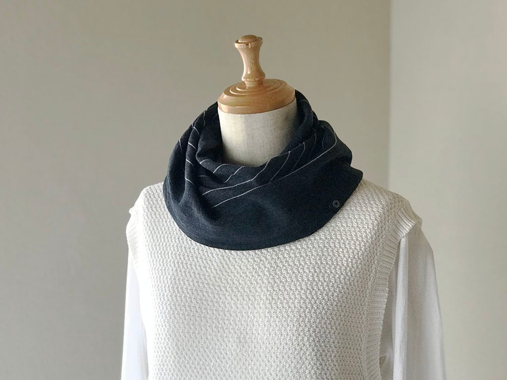 尾州産地(愛知県尾張地方)の工房で作り出された、とっても珍しい、経て編みスヌードです。