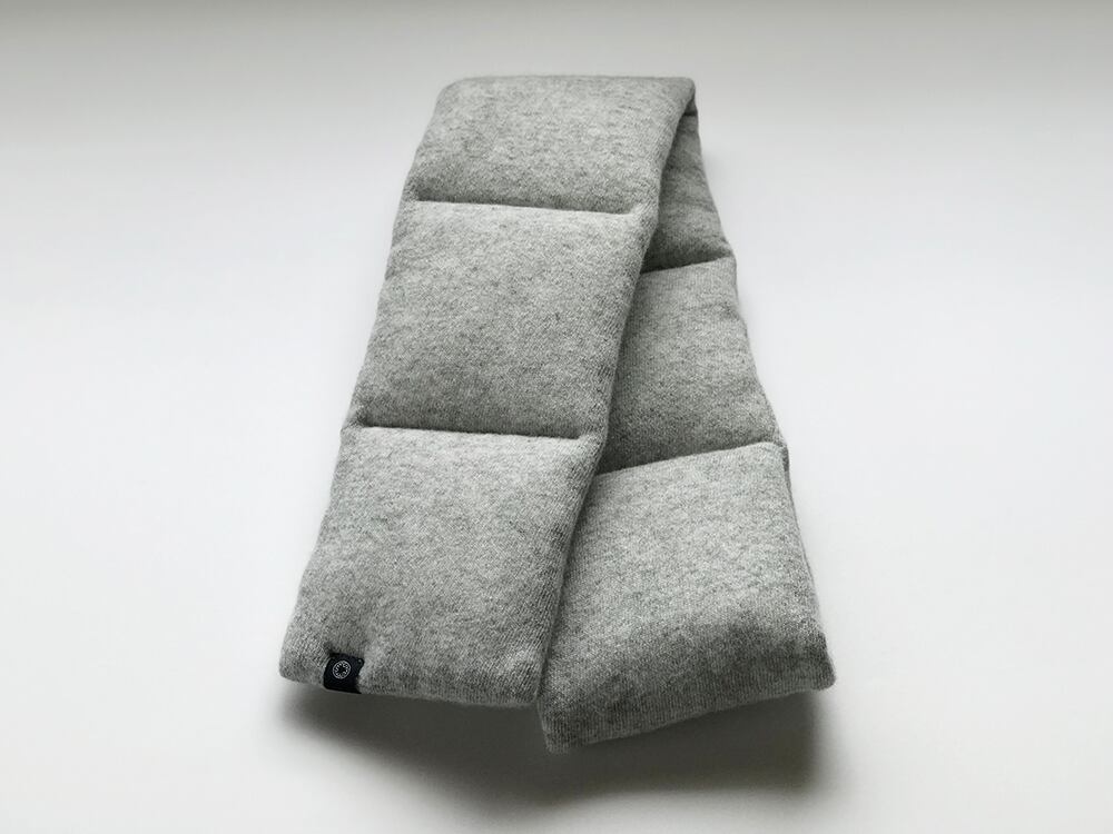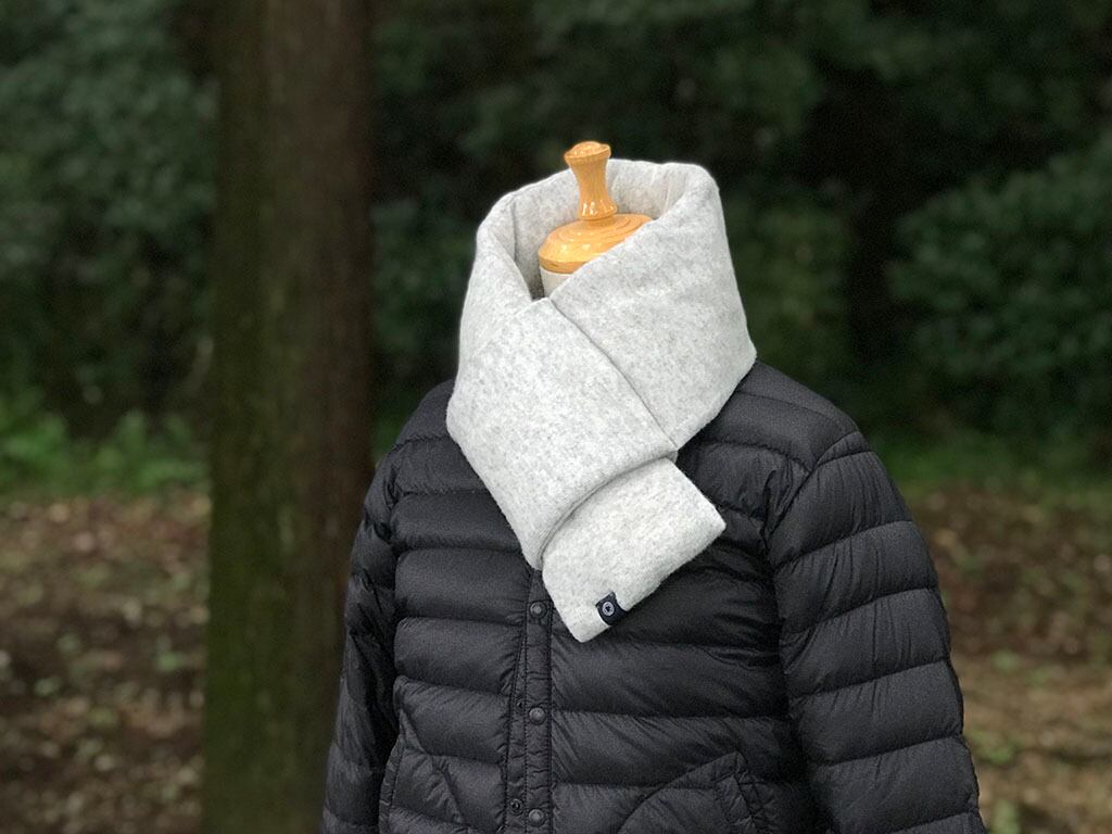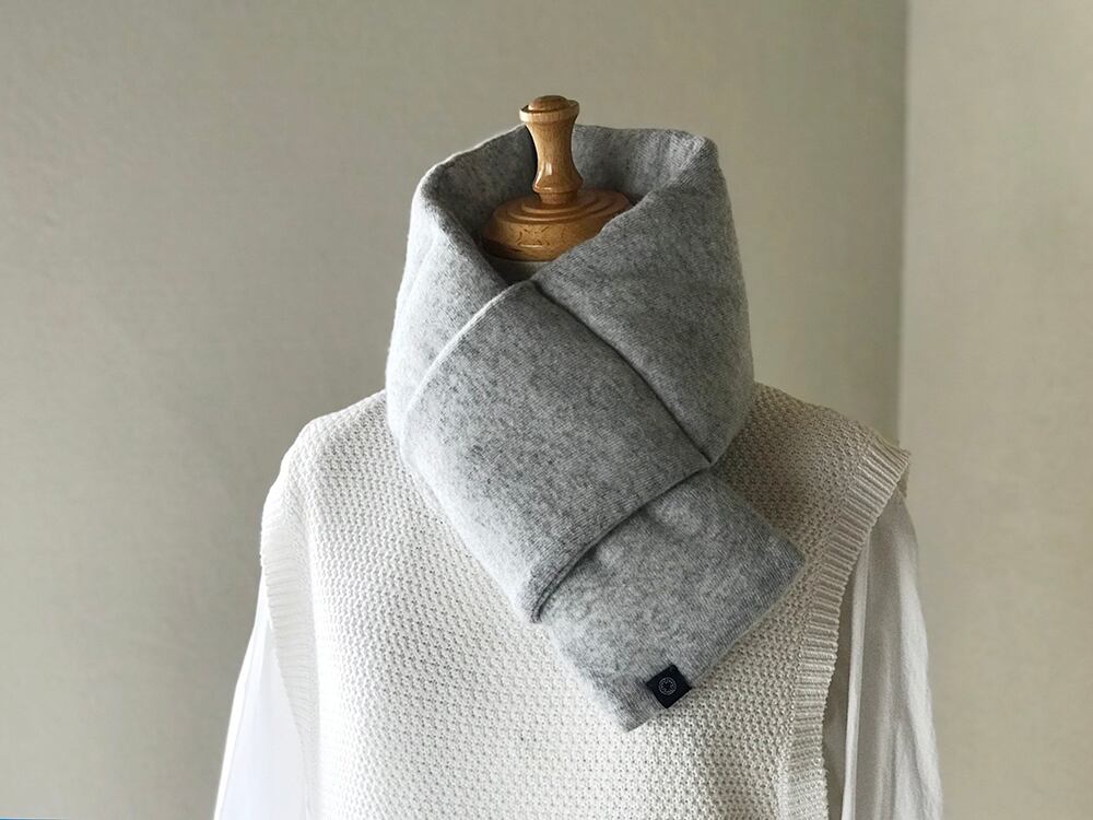 design:ふわふわ純カシミヤ素材で高機能中綿素材を包込み、手軽に暖かさを持ち運べるコンパクトなマフラーです。