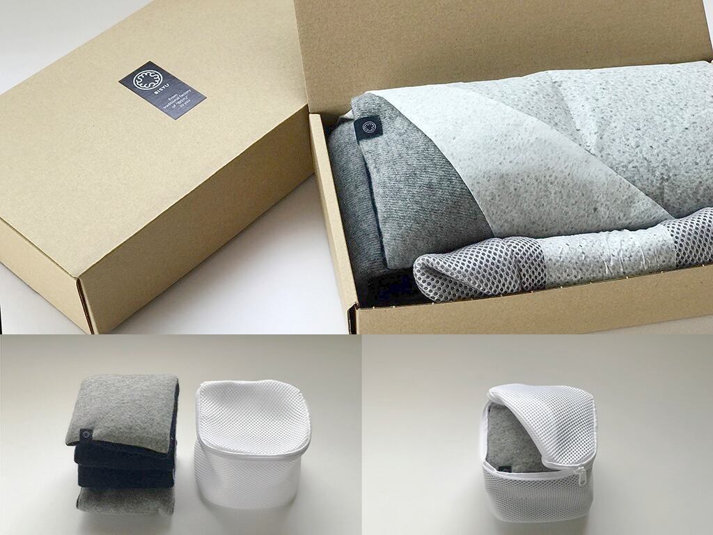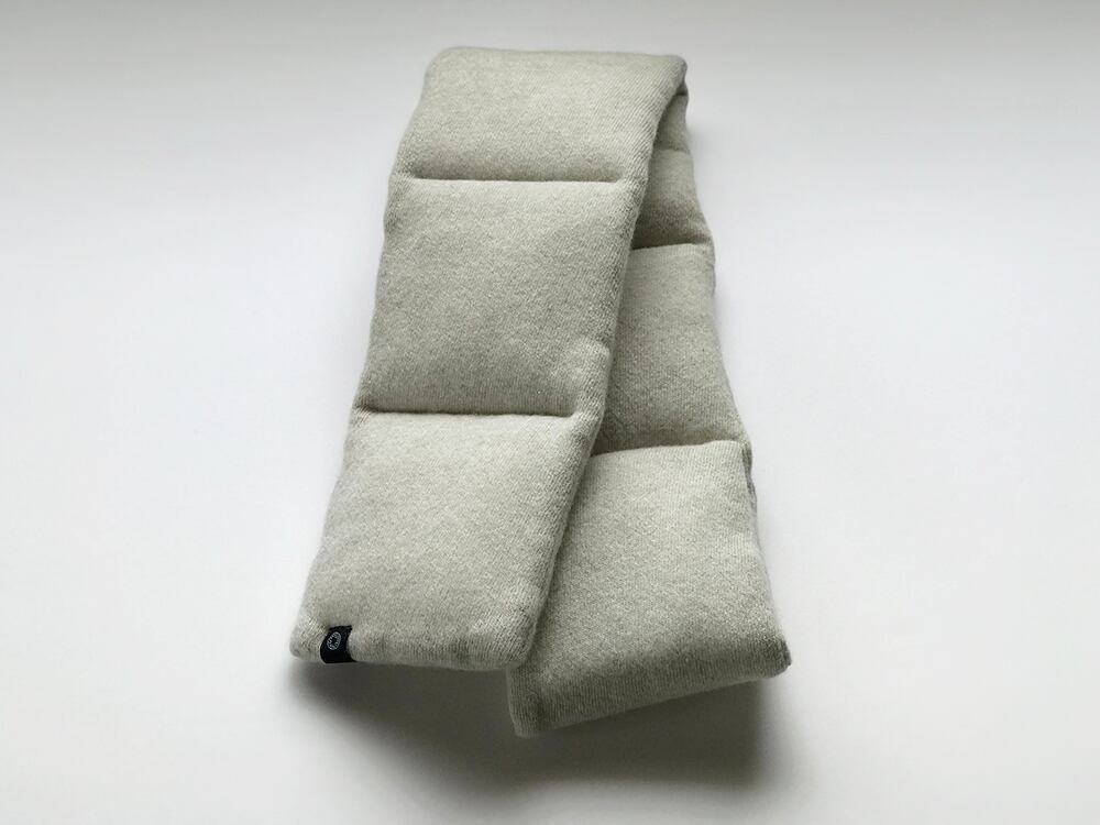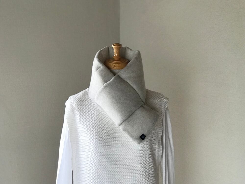 design:ふわふわ純カシミヤ素材で高機能中綿素材を包込み、手軽に暖かさを持ち運べるコンパクトなマフラーです。