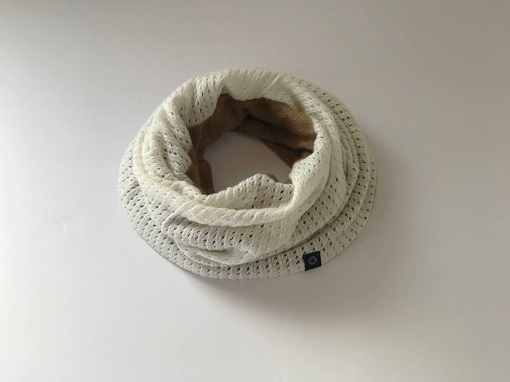 しとふわ カシミヤシルクのリバーシブルねじりスヌード ホワイトメッシュ/キャメル