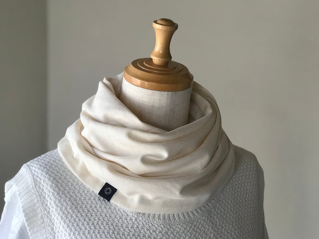 コンパクトに収まるスヌードは持ち歩きにも最適。
