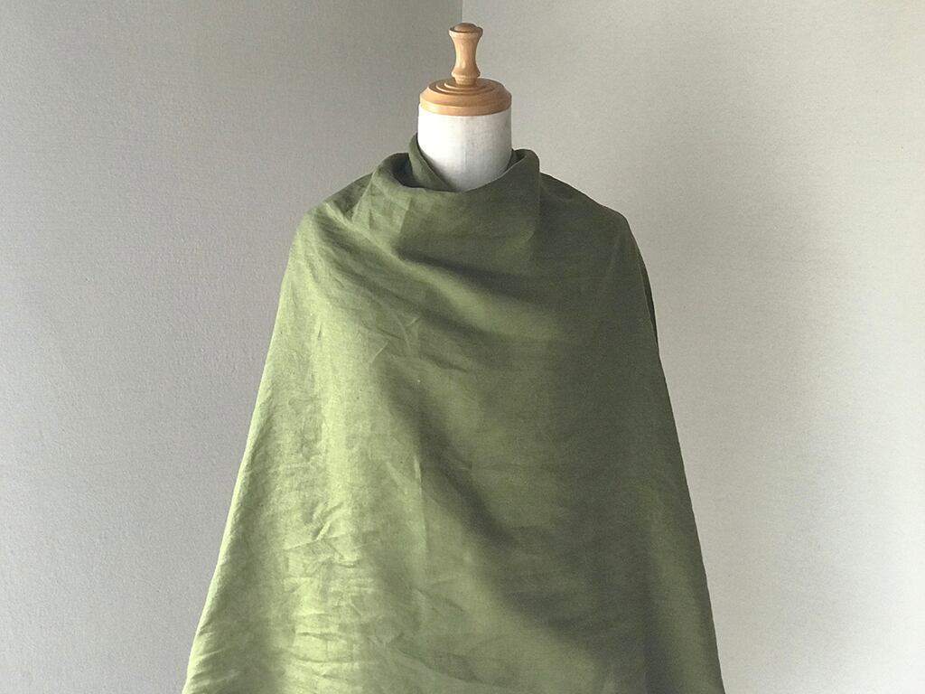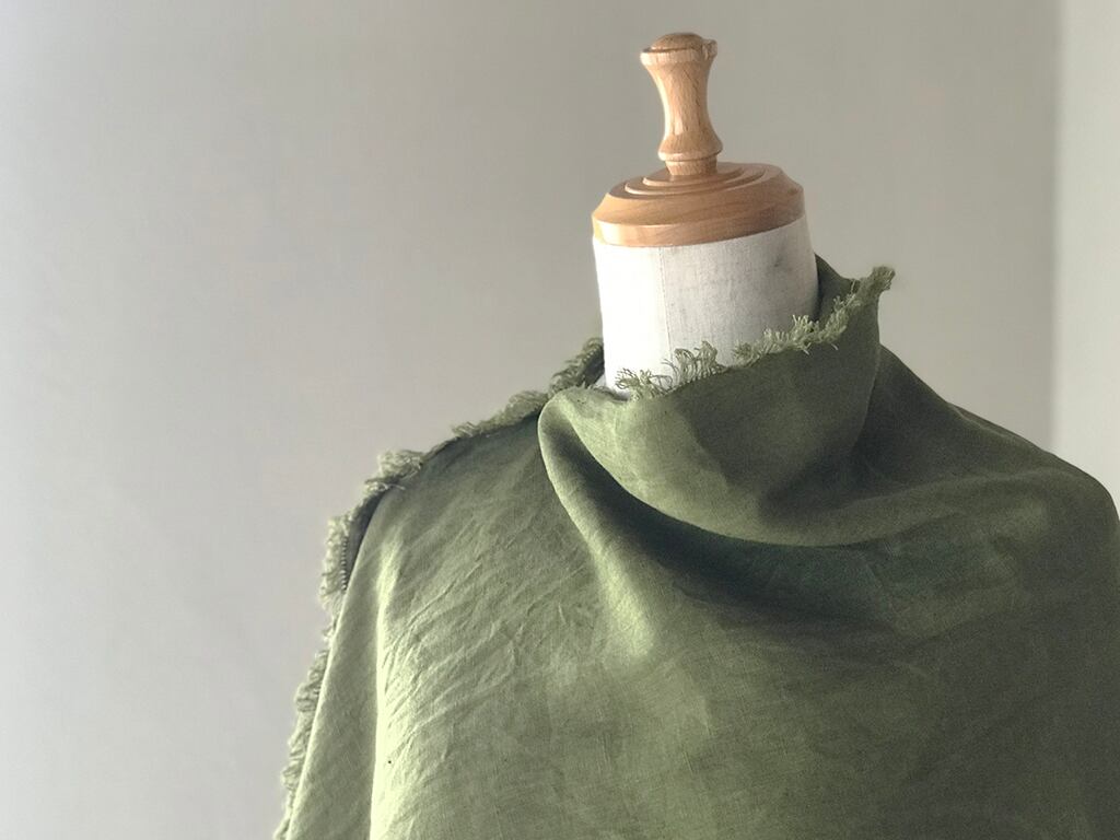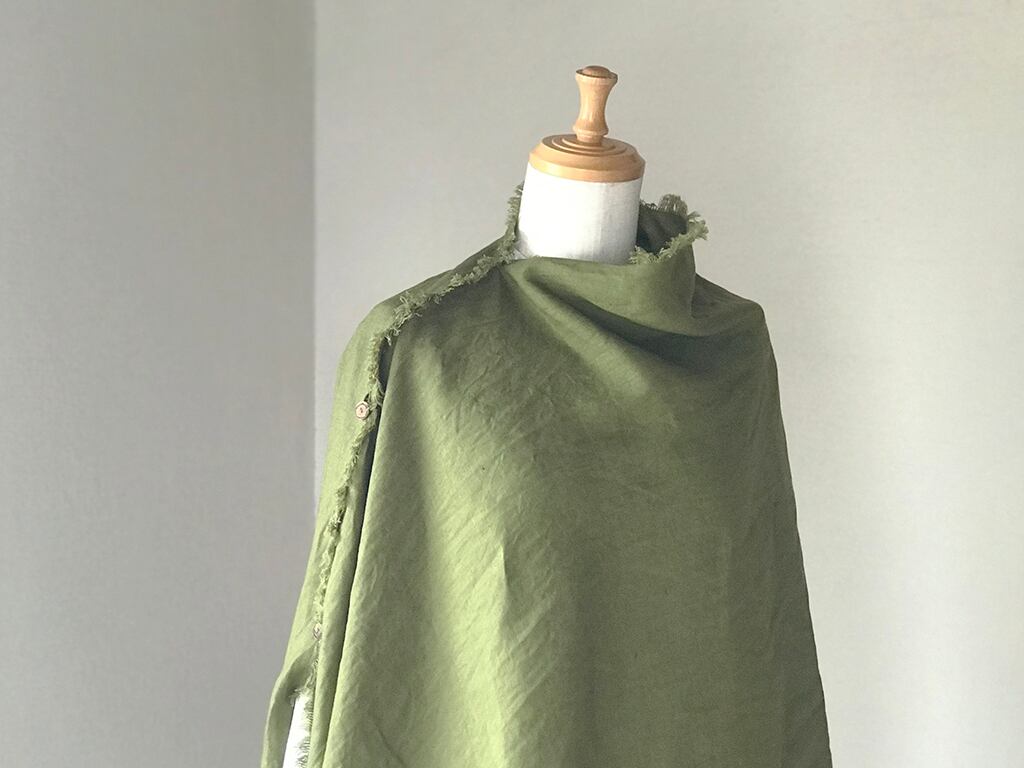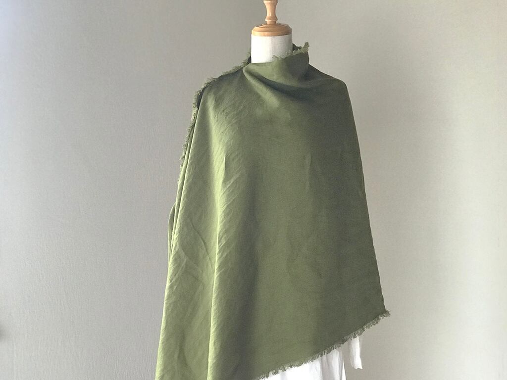3WAY リネン大判フリンジポンチョストール オリーブ色