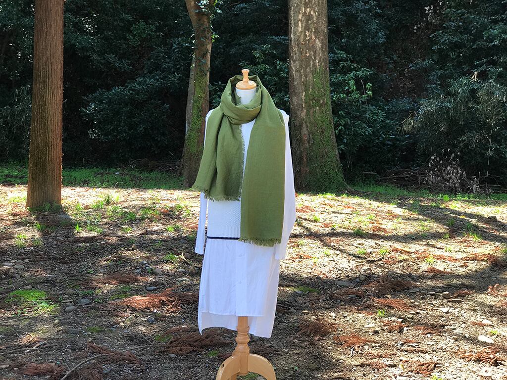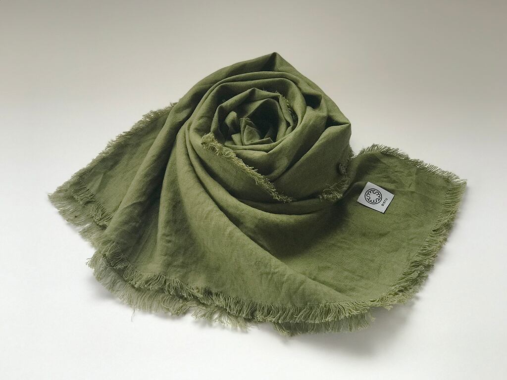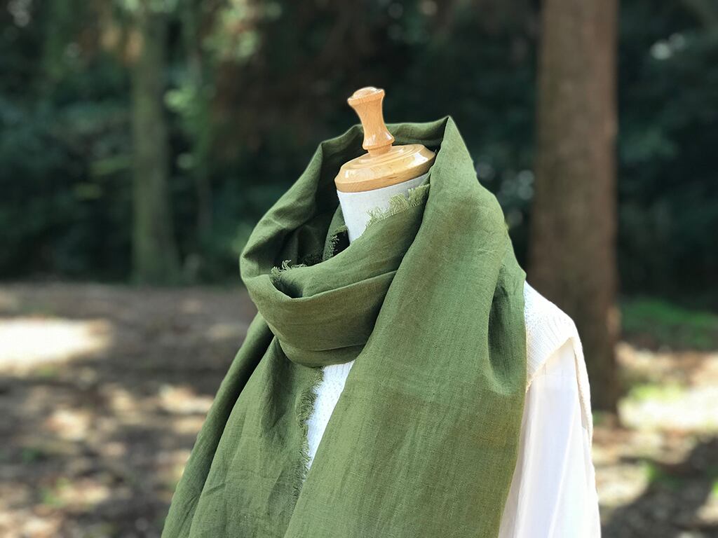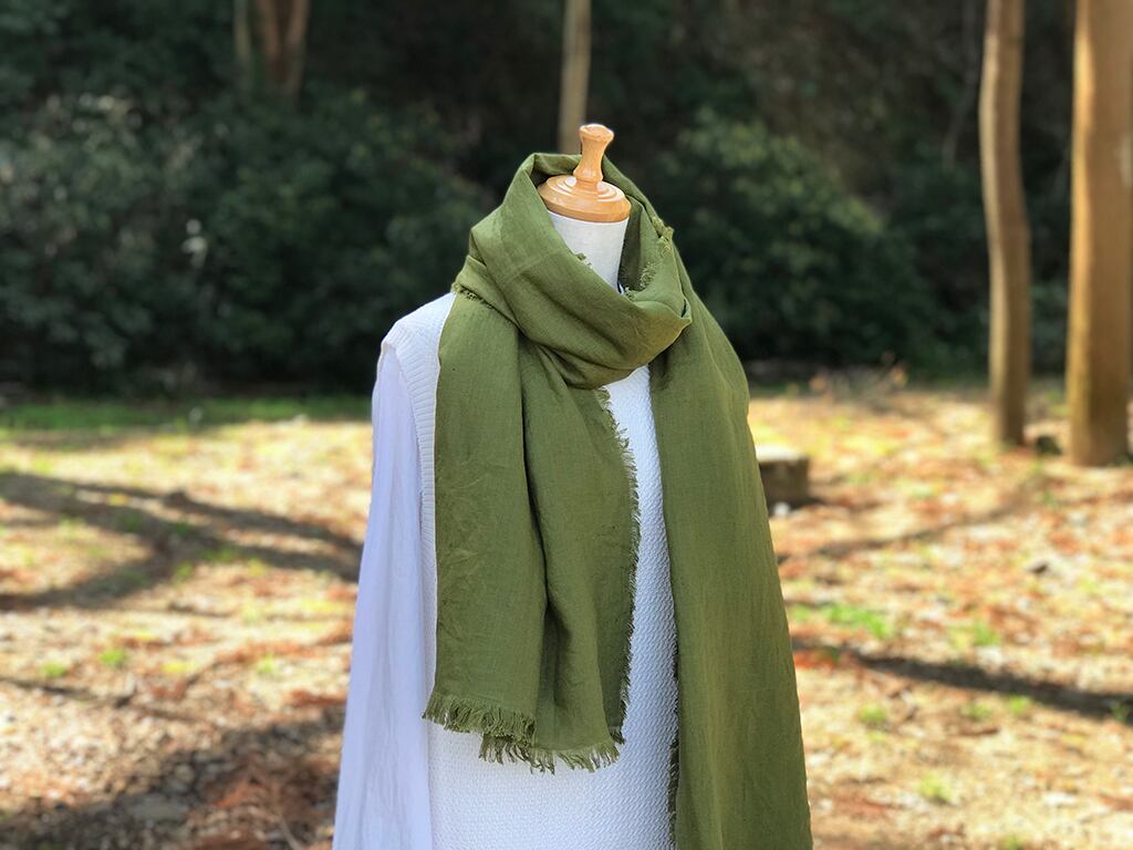 3WAY リネン大判フリンジポンチョストール オリーブ色
