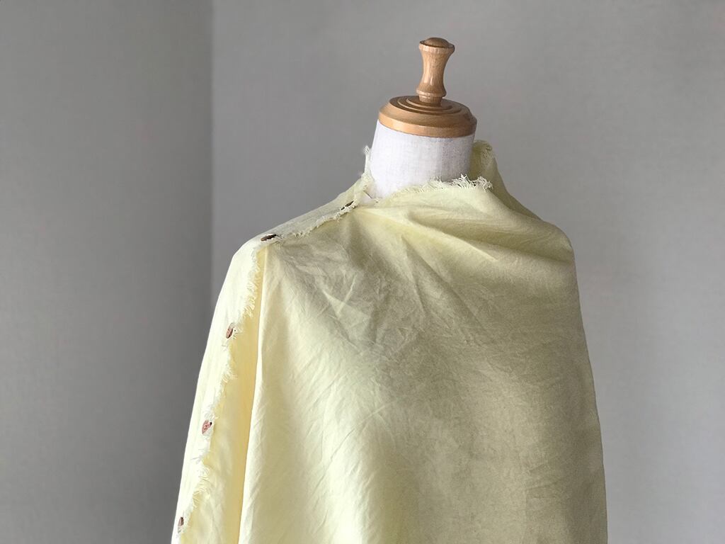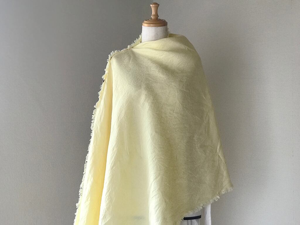 製作:四方をフリンジ加工して2回ほど手洗い・天日干しを施しました。
