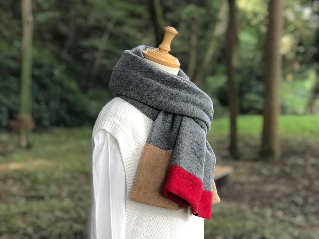 温度を纏う。純カシミヤふっくらマフラー[ KUMI-IRO ] 杢グレー/キャメル/レッド