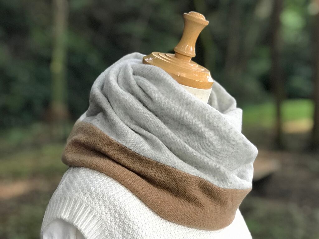 純カシミヤねじりリバーシブルスヌード [ KUMI-IRO ] グレージュ/ミルクホワイト/キャメル