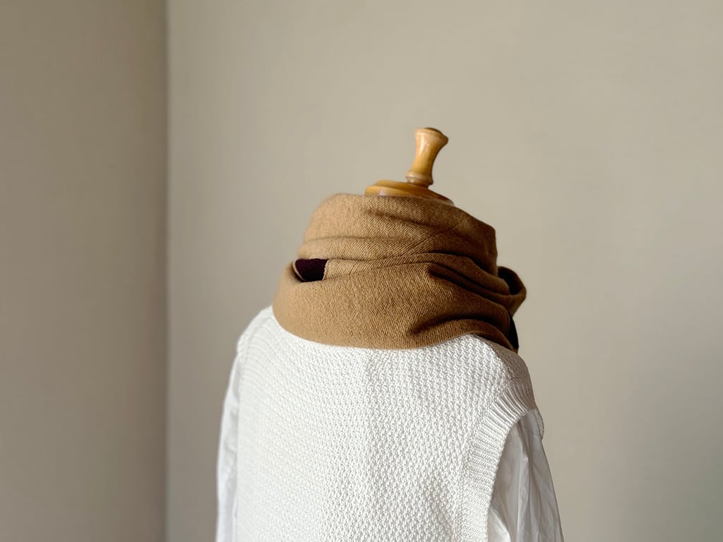 温度を纏う。ねじりリバーシブルスヌード [ MIZUTAMA ] キャメル/ボルドー玉/グレープ玉