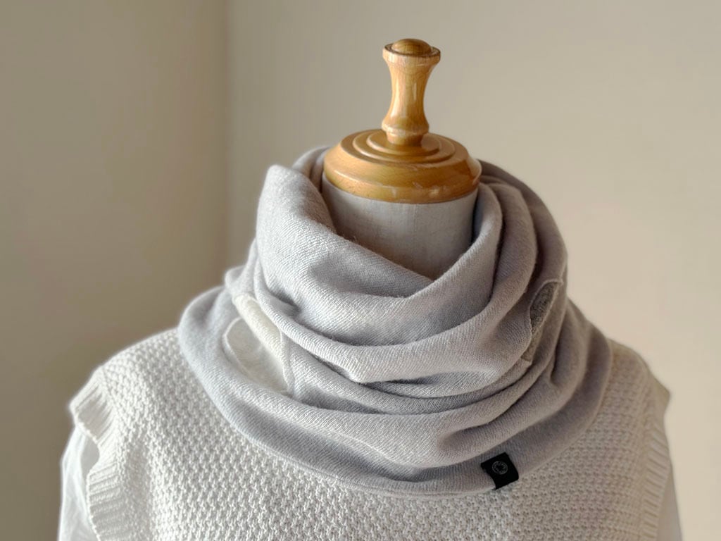 温度を纏う。ねじりリバーシブルスヌード [ MIZUTAMA ]ペールグレー/ホワイト玉/グレー玉